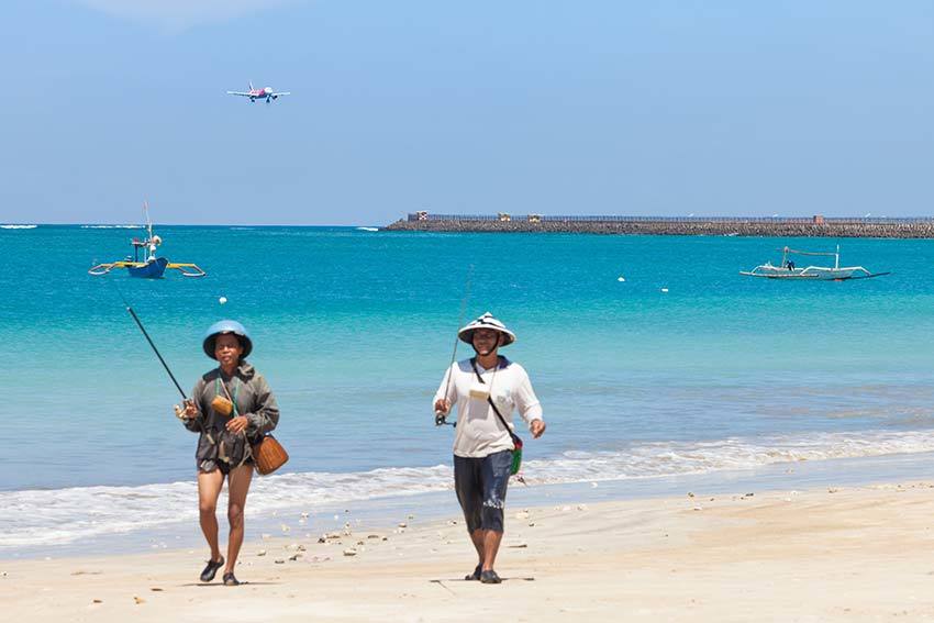 Dalla spiaggia di Jimbaran potrete ammirare gli aerei che atterrano sulla breve lingua di pista che si affaccia direttamente sul mare, troppo corta per gli aerei a lungo raggio.