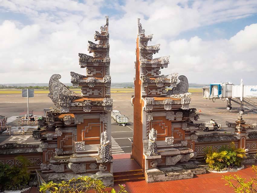 E’ un aeroporto molto moderno, rinnovato di recente con un terminal di nuova costruzione dalle forma futuristiche, ma appena atterrati, guardando dal finestrino colpisce subito l’architettura tradizionale balinese che fa da contorno alla pista con i tipici muri decorati che normalmente circondano i templi.