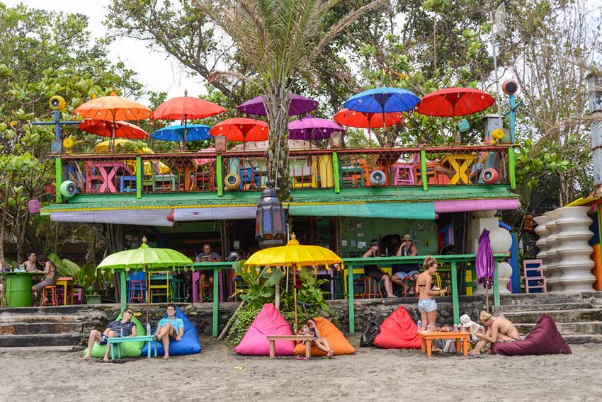 Questo semplice locale sulla spiaggia di Batu Bolong beach è il “nonno” dei tramonti all’happy hours a Canggu.E’ il nodo centrale di ritrovo dei turisti, surfisti accaldati…