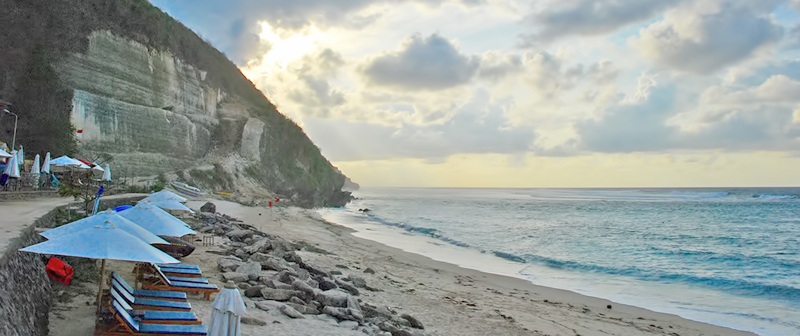 E’ una delle spiagge nascoste di Bali. E’ un tratto di sabbia bianca posta sotto le scogliere calcaree lungo la linea costiera della penisola meridionale di Bukit. La spiaggia ormai è diventata altamente accessibile a seguito dello sviluppo mega dei progetti Pecatu Graha e Pecatu Indah Resort che, alla fine del millennio scorso, ha trasformato il paesaggio. Qui il soggiorno è consigliato per chi ama i tramonti romantici.