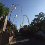 15 luglio arrivo a Denpasar di mia cognata e il fidanzato. Il vulcano ha lasciato atterrare anche se con un po’ di ritardo (10 ore) i nostri compagni di viaggio che con uno stop forzato a Dubai hanno raggiunto finalmente Bali. Per fortuna la Emirates air line, che non é la compagnia di topo gigio, ha coccolato e accolto gli sventurati passeggeri che, con gran dispiacere, si sono visti Dubai. Per Mela e Melo é la prima volta sull’isola degli dei e come tutte le prime volte bisogna andarci piano… Quindi primo stop, di 3 giorni, per prendere un po’ di confidenza con l’aria di Bali, nella zona di Kuta- Seminyak – Jimbaran. Per un caldo benvenuto italiano ho voluto proprio esagerare… Ho aperto la porta di casa affittata qui a Semyniak ed ho ottenuto quello che volevo. Colpiti e affondati. Occhi sgranati per l’assenza di muri. Le case qui a Bali sono in perfetto equilibrio con l’esterno perchè manca una parete.. un tutt’uno tra giardino piscina e ogni confort che solo l’architettura balinese sa dare. Un tuffo in piscina e via verso la spiaggia. La lunga distesa di sabbia che corre sul litorale di Kuta non ha niente da invidiare alle foto delle spiaggia brasiliane… Onde, surfisti e Kuta boys affollano la spiaggia ma é talmente grande che sembra deserta. Un po’ di ombra sotto dei vecchi ombrelloni di warung arraffazzonati e un fresco cocco da bere ha riempito di nuovo di stupore i ragazzi ancora imbambolati dal fuso. Io lo chiamo elisir di lunga vita: da quando ho scoperto il drink locale non ne posso fare a meno: il giovane cocco da bere non solo rinfresca ma ti rimette a nuovo. Ma il momento migliore per vivere la spiaggia é sicuramente il sunset. Il sole che scompare nel mare tinge il cielo di una sfumatura arancio rosata che hai la sensazione che tutta l’aria intorno a te sia gialla e calda. I locali traboccanti di gente suonano musiche da lounge bar e i cocktail viaggiano quasi volando sui vassoi. Sicuramente chi vuole fare esperienza dal sapore occidentale di aperitivo qui troverà quello che vuole… Ieri sera per non farci mancare nulla abbiamo consumato mojito in uno tra i posti più gettonati sulla spiaggia DubleSix cioè il KU DE TA. Una flotta di barman saprà accontentare i palati più esigenti non proprio gratuitamente. Tre bar con banconi lunghi fino a 20 metri sono la base di appoggio per i numerosi turisti arrivati da ogni parte del mondo che sfoggiano sulla pelle arrossata camicie bianche e pantaloncini colorati. Ma le protagoniste sono come sempre le donne.. Tantissime donne, amiche, sorelle, madri e figlie che con vestiti leggeri e svolazzanti si divertono scattando foto e bevendo da caraffe coloratissime. Mentre aspettavo all’aeroporto l ‘arrivo di Mela e Melo con in mano il mio foglio di benvenuto, ho notato la quantità di donne sole che, accompagnate dal loro sorriso, uscivano nella zona arrivi cercando il loro driver. Quindi maschietti in cerca di compagnia non vi fate problemi… Potrete sorseggiare il vostro cocktail con nuove amicizie, attenzione peró ai Kuta boys che potrebbero soffiarvi la preda da un momento all’altro. Questi ragazzi locali, dal nome leggendario, con i loro corpi da surfisti in miniatura, i tatuaggi e i capelli lunghi, con la loro aria da bohemiene, soddisfano i momenti di solitudine di numerose turiste che forse proprio per questo volano sole, da paesi lontani, per cercare quel non so che di esotico.